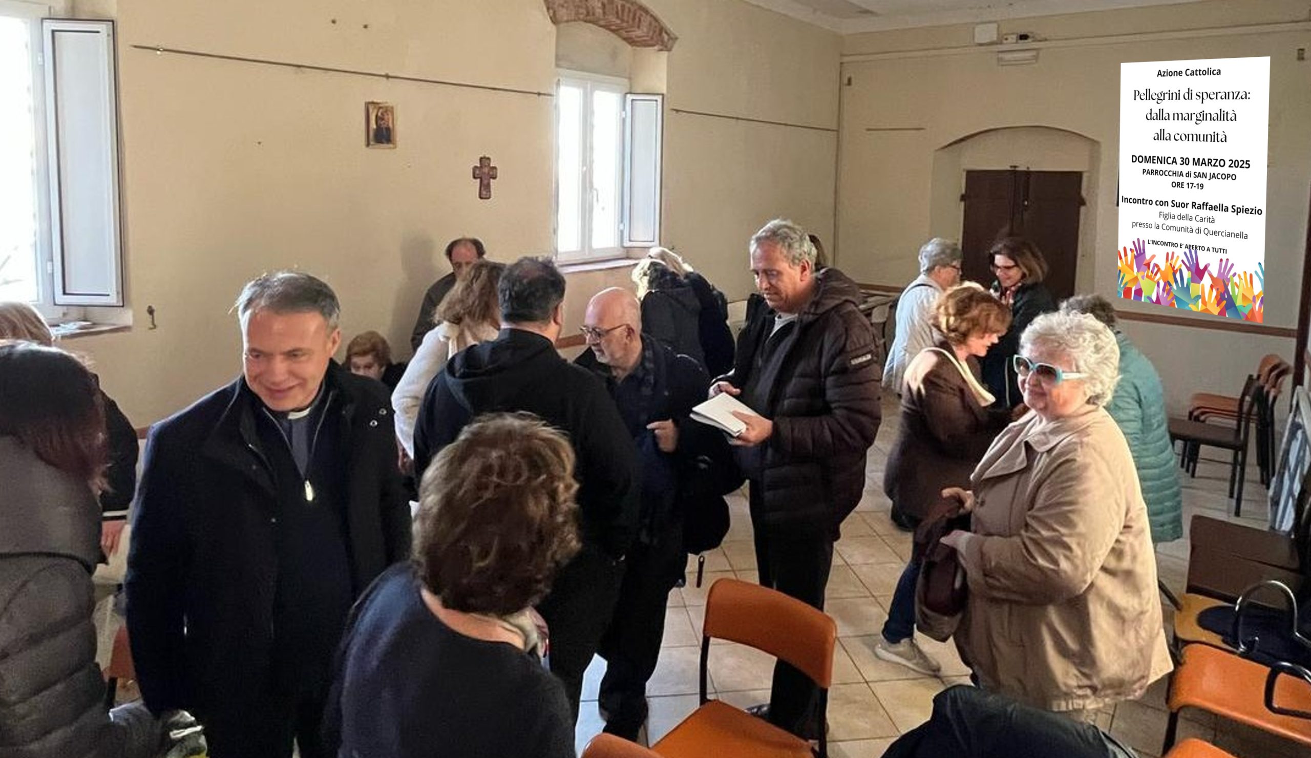 Continuano gli incontri diocesani promossi dagli Adulti di Azione Cattolica: domenica 30 marzo, ospiti dell’AC parrocchiale di San Jacopo, si è parlato di marginalità e comunità, con l’intervento di suor Raffaella Spiezio delle Figlie della Carità.