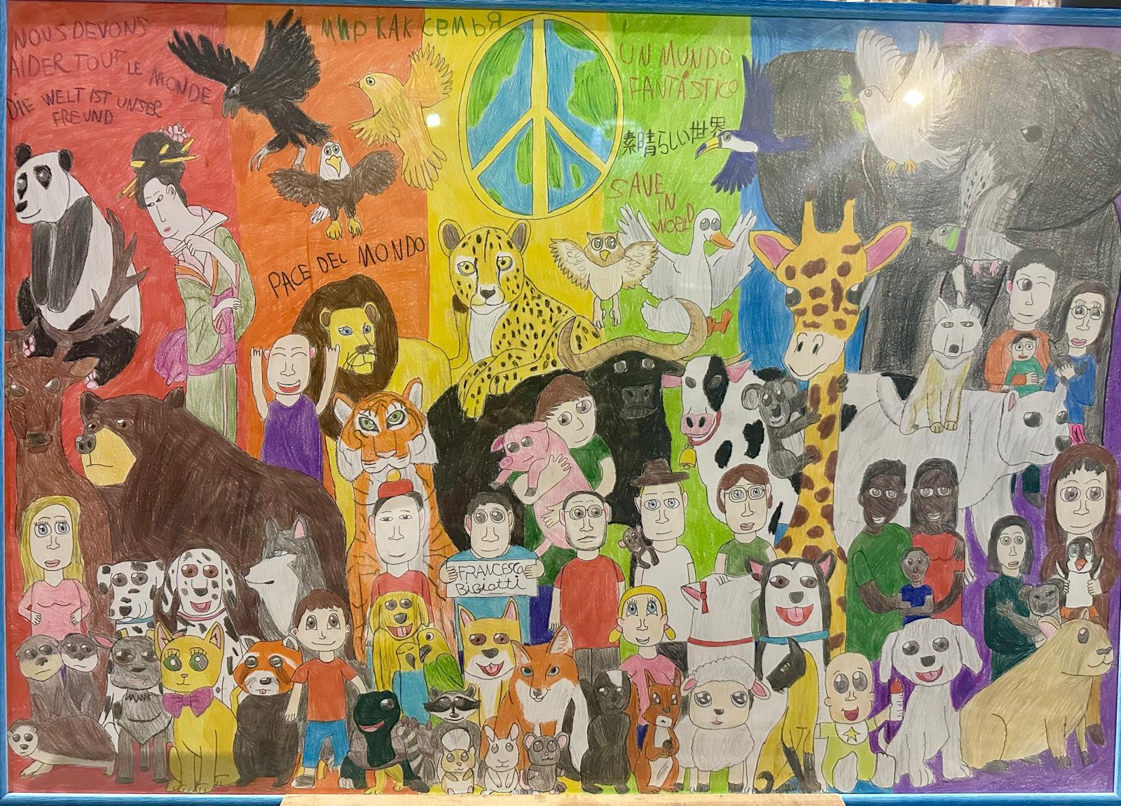 Al termine della preghiera, un momento di commozione e gioia ha avvolto l’assemblea per un bellissimo dono che un giovane ragazzo, Francesco, ha voluto fare alla comunità. Quest’opera d’arte rimarrà nella Chiesa di San Giovanni come presagio di una Pace che potrà veramente ritornare solo se ci sarà l’armonia tra i popoli. Le figure di persone e animali dipinte in armonia, unite dal simbolo della Pace, rimandano al significativo passo biblico del profeta Isaia (11,6-9): “Il lupo dimorerà insieme con l’agnello, la pantera si sdraierà accanto al capretto… Non agiranno più iniquamente né saccheggeranno in tutto il mio santo monte, perché la saggezza del Signore riempirà il paese come le acque ricoprono il mare”.