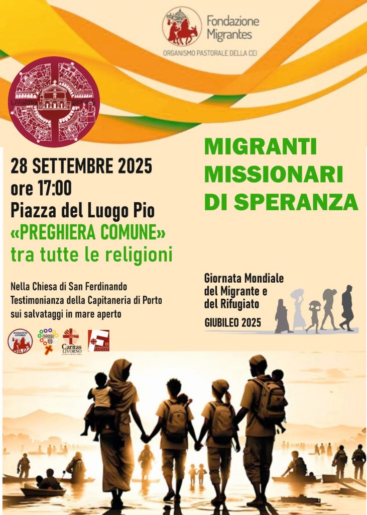 Il 28 settembre 2025 la città di Livorno si unirà in un momento di profonda riflessione e fraternità in occasione della Giornata Mondiale del Migrante e del Rifugiato. L’appuntamento è fissato alle ore 17:00 in Piazza del Luogo Pio, dove si svolgerà una “Preghiera comune tra tutte le religioni”, segno concreto di dialogo e condivisione.