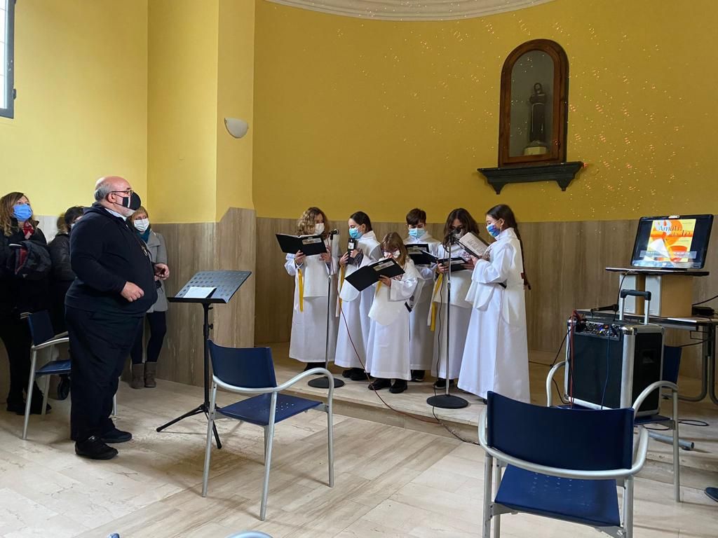 Sono un piccolo gruppo ma la loro voce sale fino al cielo! Sono le voci bianche del coro dei bambini della parrocchia di Castellanselmo: Greta, Sofia, Emma, Marta, Laura, Alessandro, Leonardo ed Emanuele, guidati dal parroco padre Vincenzo Puzone. Alcuni di loro si stanno preparando alla prima Comunione, altri l’hanno appena ricevuta e insieme “danno voce” alla comunità del Castello. Già si sono esibiti diverse volte, tra queste alla parrocchia S. Michele al Gabbro, in occasione della visita del vescovo Simone, che vedete nelle immagini.