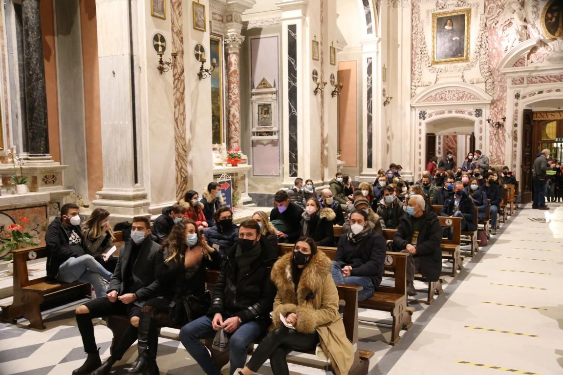 Un pomeriggio poco invitante: pioggia e freddo. Però, dalle 17.30, il piazzale davanti al Santuario di Montenero si è pian piano animato con le coppie dei fidanzati.