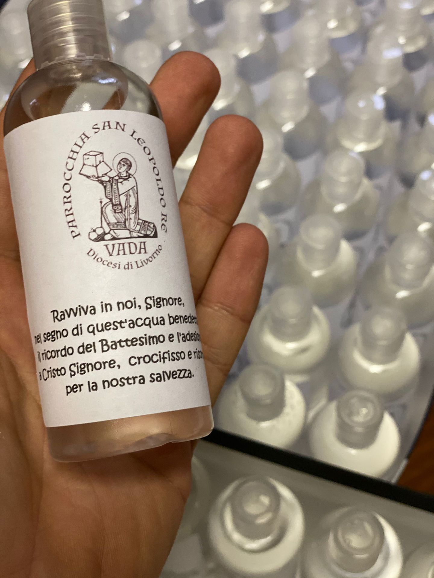 Certo entrare in una casa per incontrare la famiglia che vi abita e insieme benedire i luoghi dove la famiglia si riunisce è tutta un’altra cosa, ma in questi tempi di pandemia dove la paura, la malattia e la solitudine invadono le case, il segno dell’acqua benedetta che raggiunge i fedeli è sicuramente significativo. Per questo la parrocchia di Vada ha confezionato e igienizzato più di mille bottigliette di acqua che saranno benedette nella veglia di Pasqua e poi distribuite ai fedeli che parteciperanno alla celebrazione: sarà un modo per arrivare comunque nelle case delle persone – spiega il parroco don Bruno Giordano – e contribuire a creare un clima di raccoglimento con la preghiera con la quale sarà accompagnato il gesto della benedizione. Il capofamiglia infatti prima del pranzo di Pasqua con un rametto di ulivo della Domenica delle palme, benedirà il cibo, gli altri componenti della famiglia e l’abitazione, così come scritto sul benedizionale e sull’etichetta apposta su ogni bottiglietta, mentre i ragazzi della parrocchia stanno preparando piccole colombe da distribuire insieme all’acqua, con un messaggio di speranza e pace.