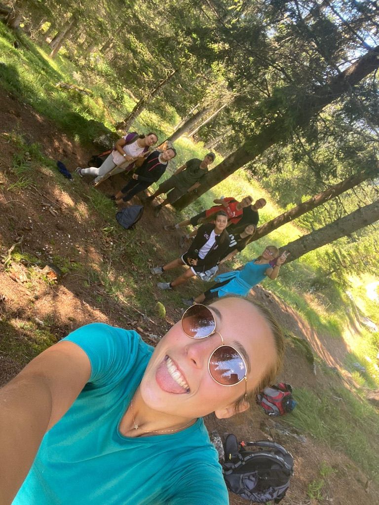 Io e Simone ci siamo fermati più a lungo degli altri per fare altre foto, da veri influencer, e adesso che siamo tornati in fondo alle cascate abbiamo trovato solo Marta e Michele ad aspettarci, gli altri si sono già incamminati, noi eravamo in ritardo, ups.