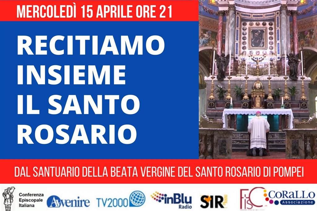 Avvenire, Tv2000, InBluradio, Sir e Federazione dei settimanali cattolici e Corallo, d’intesa con la Segreteria generale della Cei, invitano i fedeli, le famiglie e le comunità religiose a ritrovarsi mercoledì 15 aprile, alle 21, per recitare insieme il Rosario che verrà trasmesso da Tv2000 (canale 28 e 157 Sky) e InBluradio oltre che in diretta Facebook.