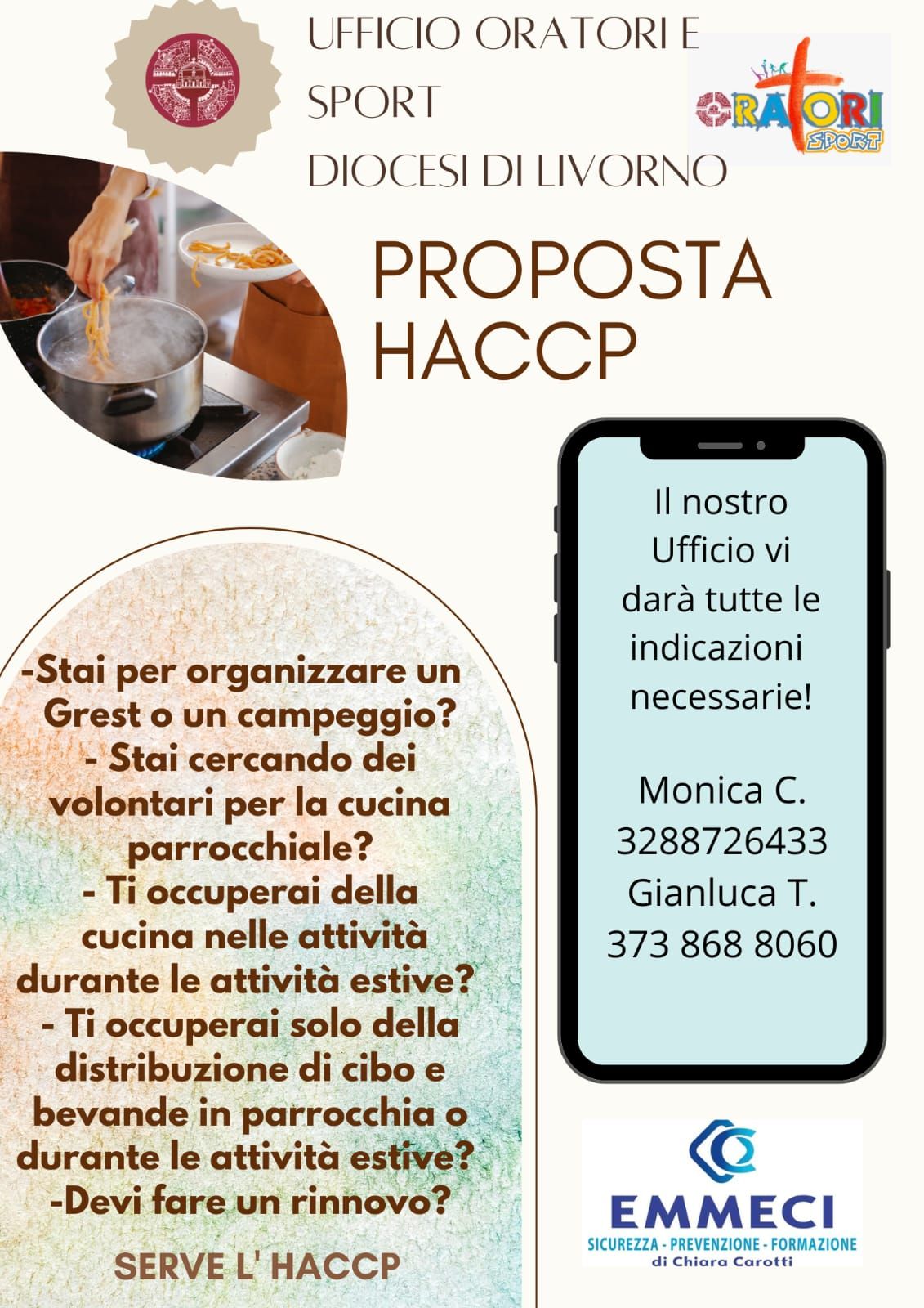 L’Ufficio Oratori e Sport della Diocesi di Livorno, mette a disposizione l’opportunità di fare dei corsi per conseguire l’HACCP ovvero l’attestato che certifica la formazione in materia di igiene e sicurezza alimentare, con l’obiettivo di garantire un elevato livello di tutela dei consumatori.Questo infatti si rende necessario per coloro che si occupano della cucina nei campeggi, e per coloro che si occupano della somministrazione di cibo e bevande nelle parrocchie, negli oratori e nei grest.