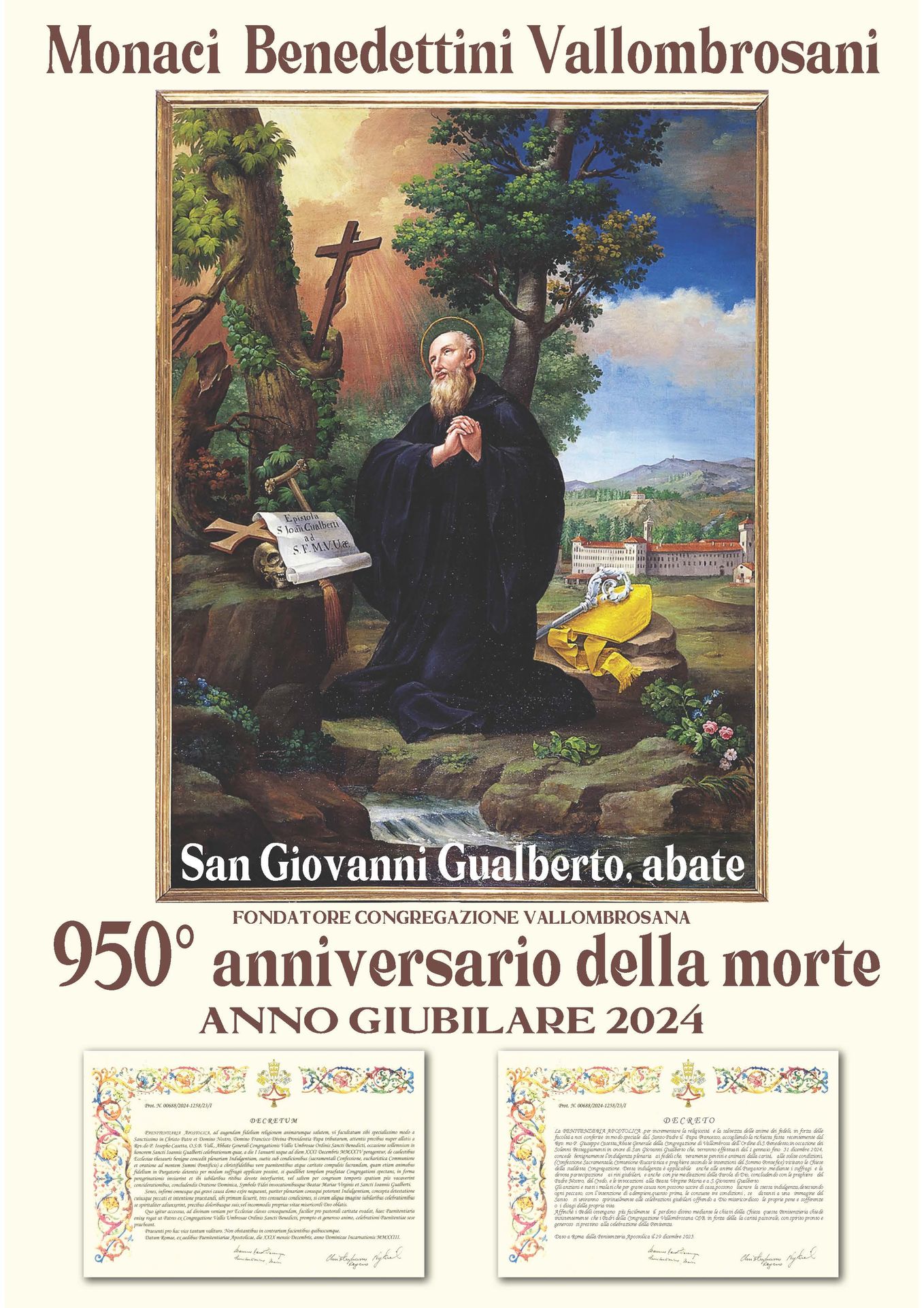 Papa Francesco ha concesso ai fedeli di poter lucrare l’indulgenza plenaria dal 1° gennaio al 31 dicembre 2024, per celebrare il 950° anniversario della morte del Fondatore dei Monaci Vallombrosani S. Giovanni Gualberto ed ha concesso questa possibilità presso tutte le case vallombrosane: Vallombrosa – Montenero – Passignano – S.Trìnita – S.Prassede – S.Maria di Pordenone – SS.Pietro e Paolo a Follonica più le 2 case in Brasile e le 4 case in India. L’indulgenza sarà concessa a coloro che si recheranno in questi luoghi, parteciperanno all’Eucarestia, si confesseranno e pregheranno secondo le intenzioni del Pontefice.