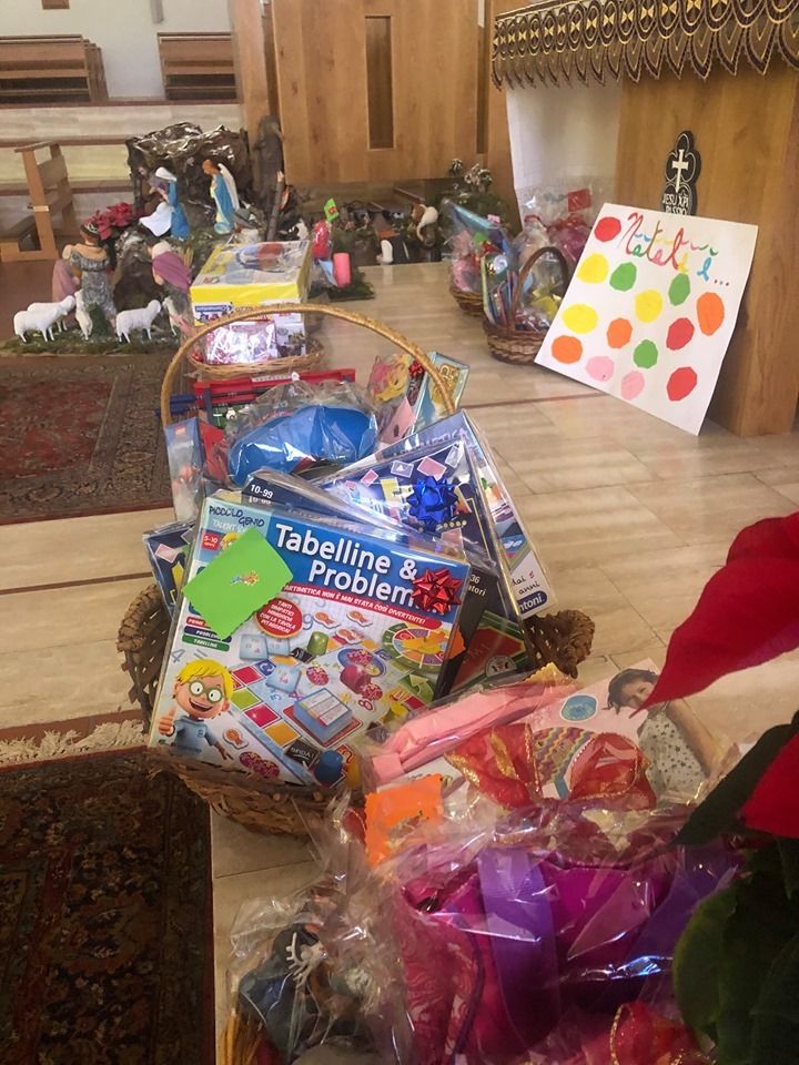 Domenica 17 dicembre in parrocchia, a Santa Rosa, durante la celebrazione eucaristica presieduta dal Vescovo Simone, al momento dell’offertorio ibambini e i ragazzi del catechismo hanno portato dei cesti pieni di doni per i bambini delle famiglie assistite dalla Caritas parrocchiale.I bimbi hanno donato uno dei loro giochi perché il Santo Natale sia festa per tutti i bambini.Il messaggio che hanno voluto dare è quello che il Natale non è ricevere ma soprattutto donare.Questa iniziativa è partita da un gruppo, parlando della bellezza del donare agli altri come Gesù si è donato, per poi coinvolgere tutti gli altri bimbi del catechismo.I nostri bimbi con questo gesto hanno dimostrato che il vero significato del Natale è donare un sorriso a chi ne ha più bisogno perché è in lui che vive Gesù