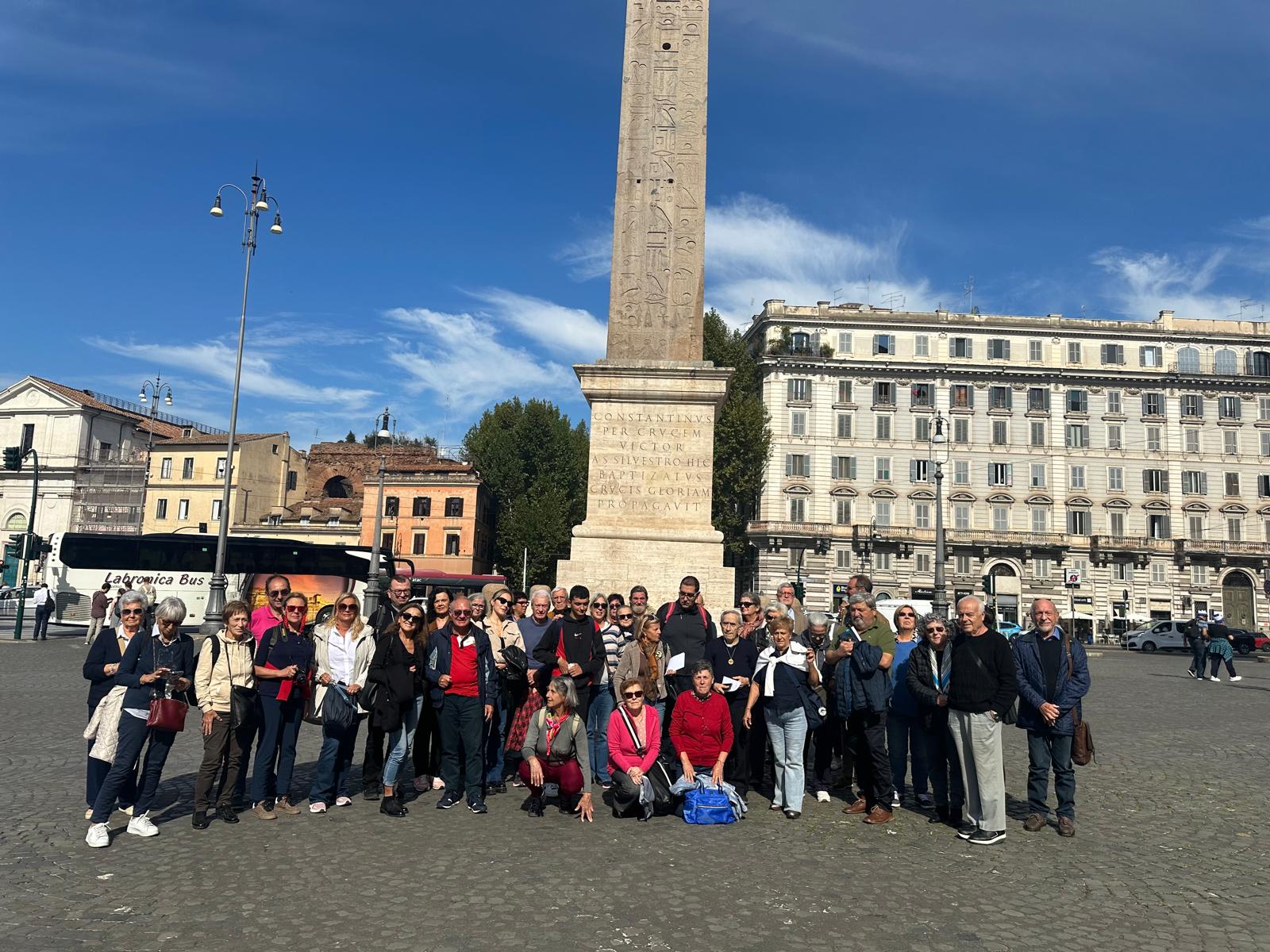 La parrocchia di san Ferdinando ha risposto all’invito del vescovo Simone Giusti di partecipare al Giubileo delle Diocesi Toscane del’11 ottobre. Era un gruppo di 50 pellegrini con il Parroco fra’ Emil Kolaczyc, fra’ Michele Siggillino e padre Vasile Orghici parroco della Chiesa Greco-Cattolica Romena della Purificazione. I pellegrini, hanno avuto la possibilità di celebrarlo anticipando di un giorno l’appuntamento col Papa e hanno così varcato le Porte Sante di San Giovanni in Laterano, della Basilica di Santa Croce in Gerusalemme e della Basilica Regina Apostolorum. In questo percorso la scelta non è stata casuale perché San Giovanni non è una semplice chiesa, ma è la “Madre e Capo di tutte le Chiese della Città e del Mondo”. È la vera e propria Cattedrale del Vescovo di Roma, il Papa, e la prima in ordine di importanza tra le quattro Basiliche Papali. La sua rilevanza storica e spirituale è sottolineata anche dalle preziose reliquie che custodisce: le teste di San Pietro e San Paolo, conservate nel ciborio, e un frammento della tavola del Cenacolo, a testimonianza dell’istituzione dell’Eucaristia. La visita a San Giovanni in Laterano, dunque, è stato un omaggio al cuore pulsante della cristianità. Questa centralità ci ha poi guidato, in un ideale percorso sulle orme della Fede, verso la Basilica di Santa Croce in Gerusalemme che pur non avendo la supremazia ecclesiastica del Laterano, ne è strettamente legata per la sua funzione di custode della Memoria della Passione. Fu infatti per opera di Sant’Elena, madre dell’imperatore Costantino – il primo a donare il Laterano alla Chiesa – che le Reliquie della Santa Croce (ritrovate a Gerusalemme) furono traslate a Roma e qui conservate, rendendo la Basilica un autentico “frammento di Gerusalemme” nella Città Eterna e ha offerto ai pellegrini il contatto diretto con i segni materiali del Sacrificio di Cristo.