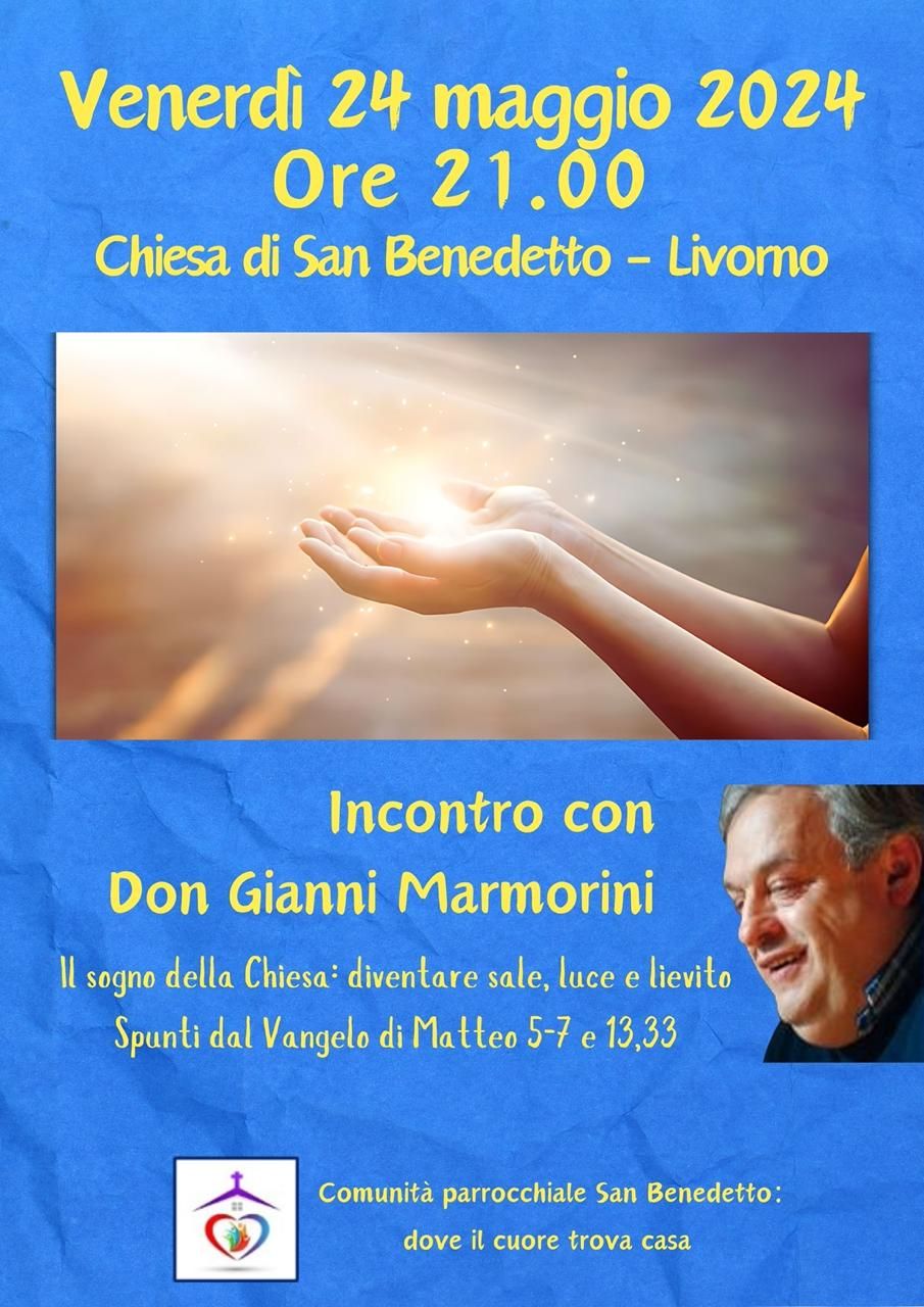 Per rispondere a questa richiesta, dopo l’incontro ad inizio quaresima con Don Medori, abbiamo invitato Don Gianni Marmorini che per tanti anni ha tenuto incontri e corsi biblici presso la Comunità di Romena e che ora svolge il suo ministero presso la parrocchia di Papiano presso Stia (a pochi chilometri da Romena). L’incontro, aperto a tutti, si terrà Venerdì 24 maggio alle 21 presso la parrocchia di San Benedetto. Il tema proposto é: “Il sogno della Chiesa: diventare sale, luce e lievito” prendendo spunto da vangelo di Matteo ai capitoli 5-7 e 13,33.