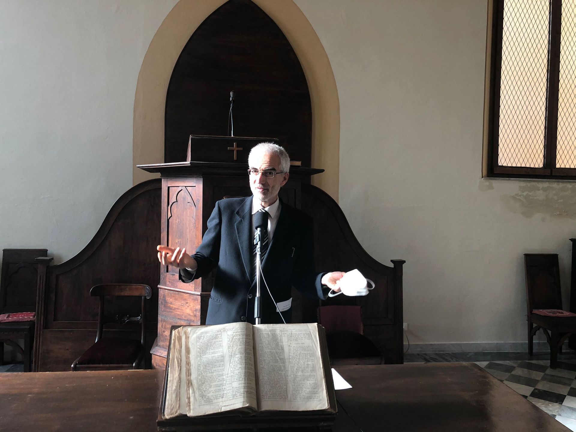 Il Pastore Daniele Buochard durante il sermone, ha osservato quanto sia necessario per comprendere la pericope in oggetto, ricostruire il contesto dell’ultima sera quando Gesù lava i piedi agli Apostoli e dà loro le ultime raccomandazioni. Nel capitolo precedente (14) Gesù parla della sua morte e dello Spirito che li consolerà, e il capitolo si conclude con l’invito ad alzarsi ad andare via. Quindi abbiamo al capitolo 15 e 16 Gesù che parla con loro e al capitolo 18 gli Apostoli se ne vanno. Considerando quindi le parole del passo letto, vediamo che Gesù è in piedi, all’uscio; c’è una precarietà di fondo e anche spaziale; dal luogo della cena, all’esterno, al buio, mentre stanno uscendo. In questa situazione, Gesù stesso però continua ad essere la “Vite che in comunione con i tralci” e sarà tale da produrre il frutto anche dopo la sua morte in croce e le sue parole continueranno anche dopo di Lui. Il dialogo sarà cosi forte che continuerà anche dopo ed esaudirà le loro richieste. Il suo amore permarrà. Se però loro si allontaneranno da Lui, essi recideranno se stessi dalla pianta . Siamo in una situazione paradossale; Gesù si separa da loro, ma rimane con loro, mentre l’uomo se si assenta da Lui è perso. Al principio abbiamo gli Apostoli che pensavano in un suo ritorno in breve tempo. Invece sono passati 2000 anni e i cristiani ogni volta che si sono allontanati dal loro Maestro, hanno avuto momenti in cui hanno creato grandi fratture e invece di stare in piedi come Gesù, si sono accomodati e seduti; pur leggendo queste parole, essi si sono allontanati dalla loro vocazione alla comunione.
