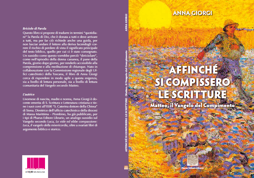 Con l’Avvento inizia il nuovo anno liturgico, che sarà dedicato alla lettura del Vangelo di Matteo. La scrittrice Anna Giorgi ha pubblicato con le edizioni diocesane Pharus il libro “Affinché si compissero le Scritture”, incentrato proprio sulle pagine del Vangelo di Matteo.