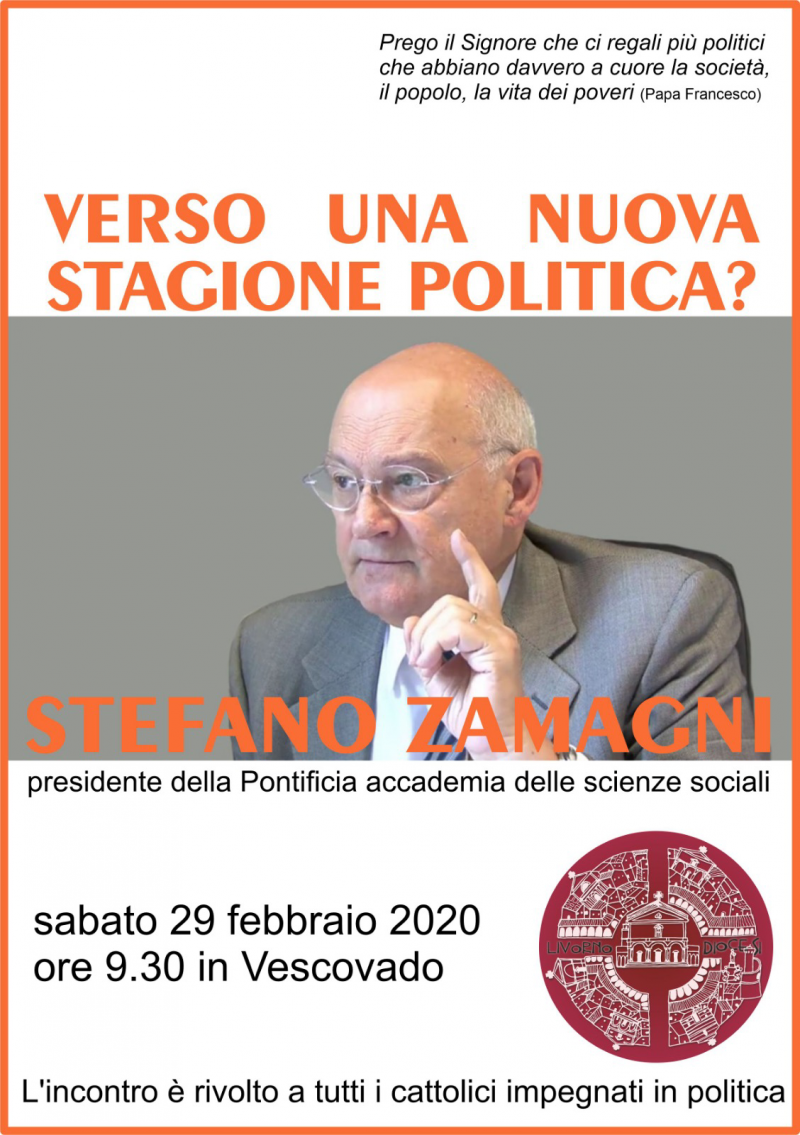 Sabato 29 febbraio alle 9.30 in vescovado spazio al confronto politico con l’incontro con l’economista Stefano Zamagni, professore ordinario di Economia Politica all’Università di Bologna e Adjunct Professor of International Political Economy alla Johns Hopkins University, Bologna Center, nonché presidente della Pontificia Accademia delle Scienze sociali. I cattolici interessati e impegnati in politica sono invitati a partecipare per riflettere insieme sul momento che stiamo vivendo e sulle prospettive di una nuova stagione per i cristiani che vogliono impegnarsi in questa forma di carità.