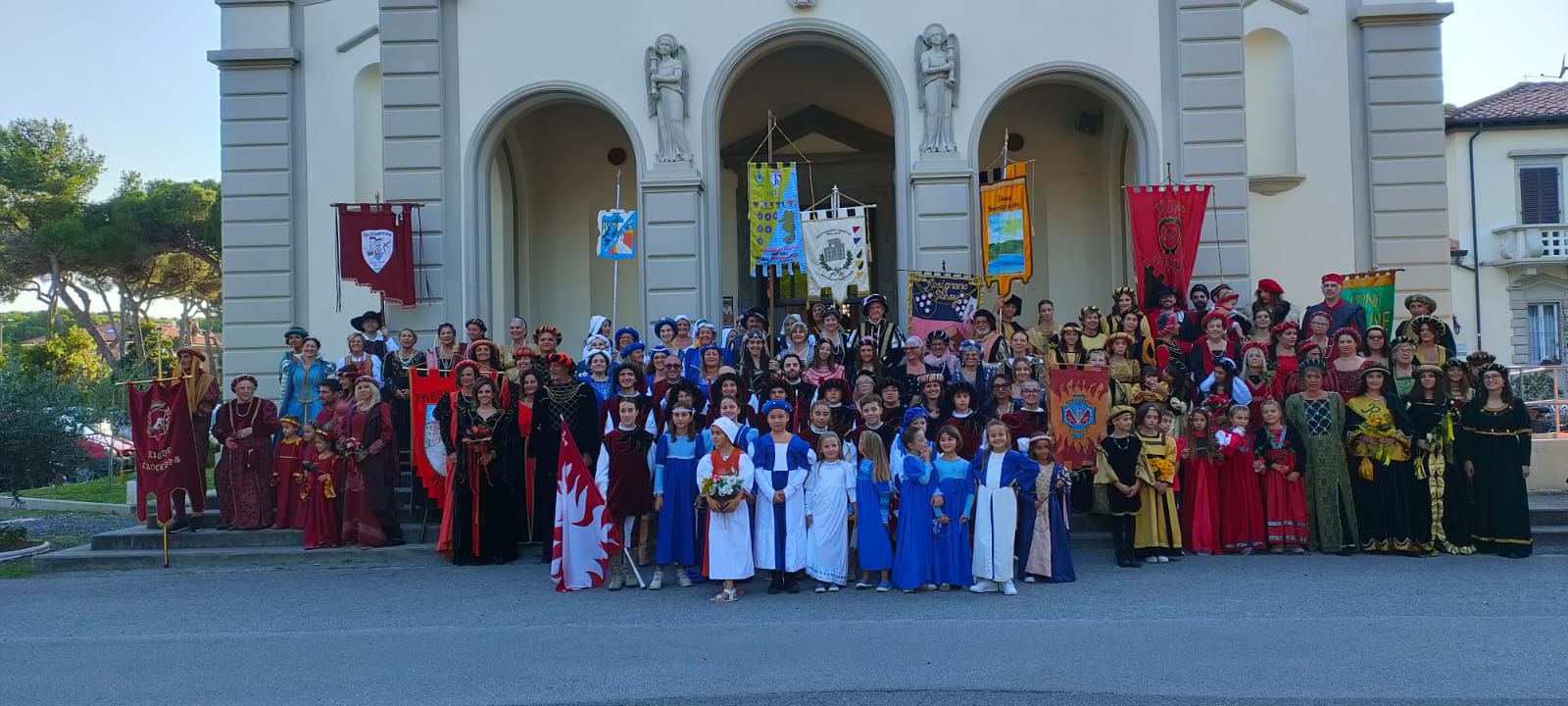 Dopo circa 4 anni di fermo torna a Rosignano Solvay la processione dei rioni con gli abiti storici, una tradizione che la Proloco Io Amo Rosignano Solvay ha voluto far rivivere insieme a Don Matteo Seu e alla tradizionale processione della Patrona, al termine della Messa nella chiesa a lei dedicata. È stata una festa che ha visto coinvolte tante associazioni che si sono impegnate, oltre la Proloco di Solvay hanno partecipato al corteo l’associazione La Livornina, la Proloco di Rosignano Marittimo, la Croce Rossa, la Pubblica Assistenza, l’User, gli sbandieratori di Suvereto e la Filarmonica di Rosignano e, per la prima volta, l’agenzia dello Sport di Rosignano che ha curato i giochi per l’assegnazione del Palio. È stata una grande giornata che ha avuto una grandissima partecipazione ma soprattutto a fatto riavvicinare al mondo del volontariato tantissime persone.Siamo certi che un passo alla volta riusciremo a riproporre il consueto palio.