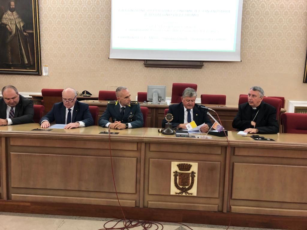 Monsignor Giusti, ringraziando l’Arma per i numerosi servizi alla società ha sottolineato l’importanza del fatto che la Finanza non solo deve controllare ma deve far vedere che c’è una buona amministrazione e far conoscere realtà virtuose. L’autorevolezza si acquista con la rispettabilità. Occorre una azione comune dove ci siano una classe politica retta e dei cittadini retti. In questo ambito assumono “un importante ruolo la religione e l’educazione civica perché non ci sono solo i diritti ma anche le regole per assolvere ai propri doveri.”