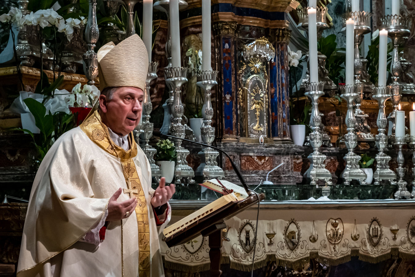 Invito inoltre ogni cristiano a nutrirsi della Santissima Eucarestia: tanto mai necessaria in questo tempo, per vincere paure e avere la forza e il coraggio per non chiudersi, ma vivere questo tempo all’insegna della carità e della solidarietà. Come fare anche qui?