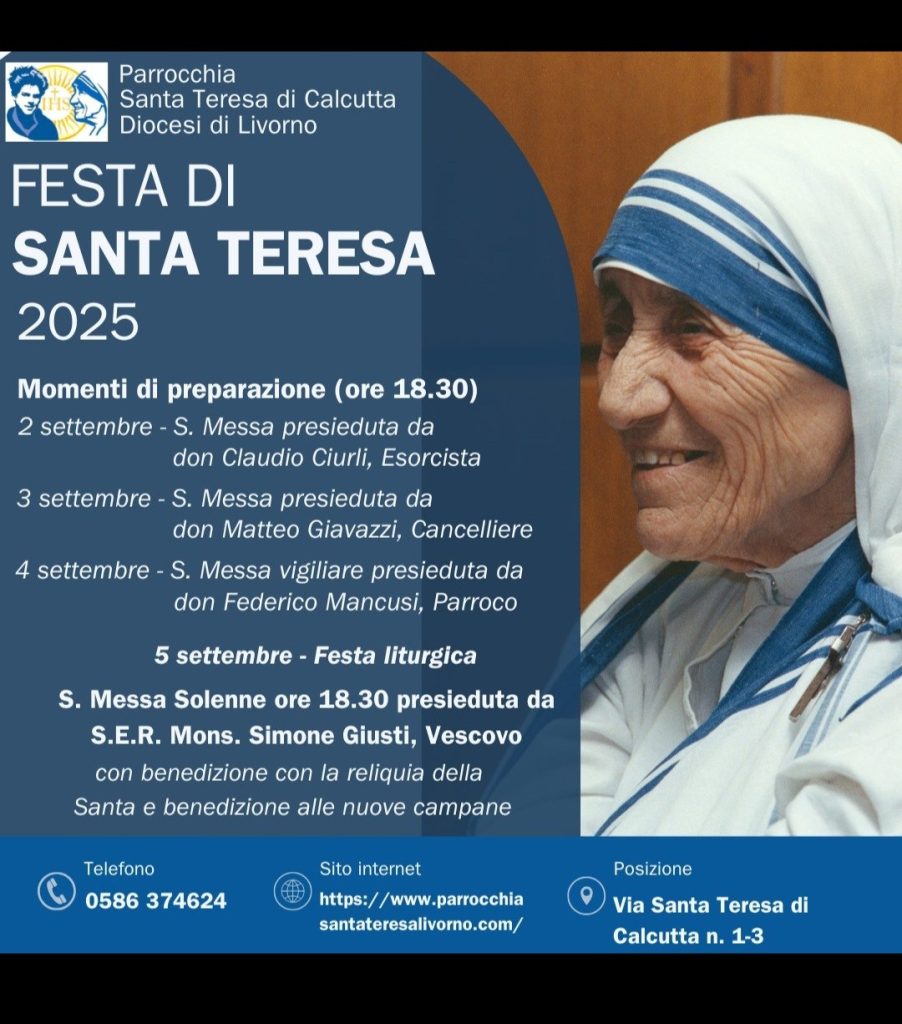 La comunità parrocchiale di Santa Teresa di Calcutta si prepara a celebrare con solennità la Festa patronale Gli appuntamenti, distribuiti tra il 2 e il 5 settembre, offriranno ai fedeli momenti di preghiera e di riflessione spirituale.