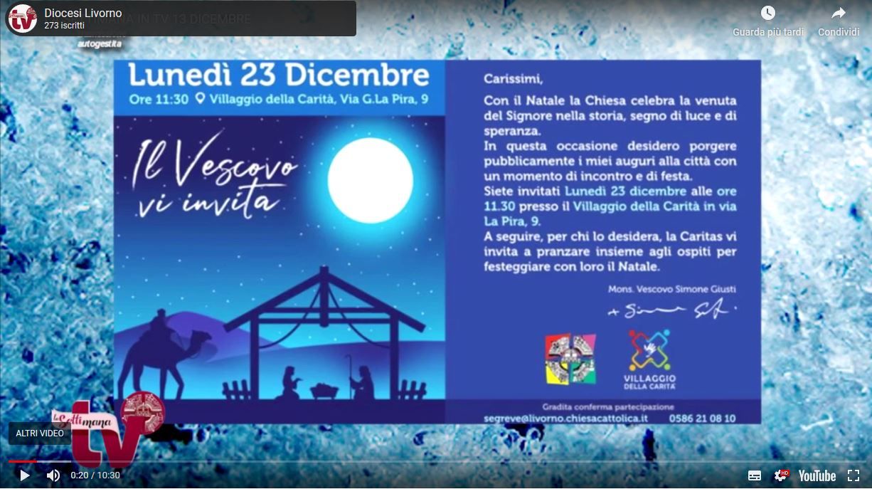 Questo fine settimana La Settimana in Tv parla del Natale e delle novene in preparazione alla festa, che saranno trasmesse in diretta fb; si annuncia la processione dei Magi in costume in calendario il 6 Gennaio 2020; si presentano i nuovi arredi liturgici del duomo e gli spettacoli e concerti proposti dall’IDAC