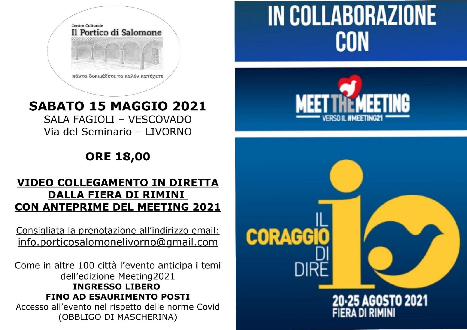 Anche Livorno quest’anno parteciperà a “Meet the Meeting – Verso il Meeting 2021”, il primo appuntamento che lancerà la 42ma edizione del Meeting di Rimini e che ne inaugurerà il cantiere.La diretta dell’evento, infatti, avverrà proprio dalla Fiera di Rimini, che tornerà ad ospitare il Meeting dopo la “pausa” della Special Edition 2020, sabato 15 maggio dalle ore 18.30 e si potrà seguire online sul sito www.meetingrimini.org e sui canali Facebook e Youtube del Meeting di Rimini.Meet The Meeting anticiperà i principali temi e contenuti del Meeting 2021 con un particolare invito a sostenerne la costruzione: anche quest’anno sarà infatti possibile donare e ricevere in omaggio un’ottima bottiglia di vino.Una delle novità più entusiasmanti di questa edizione di Meet the Meeting è la partecipazione di 100 città in Italia e all’estero che si stanno coinvolgendo per promuovere l’appuntamento e per realizzare a loro volta eventi a sostegno del Meeting. Numerosi volontari sono già all’opera, seguendo le attuali disposizioni sanitarie, per organizzare nelle proprie città degustazioni, serate musicali, incontri ed eventi con alcuni dei protagonisti del prossimo Meeting e per gustare insieme la diretta del 15 maggio. Per tale occasione il Centro Culturale “Portico di Salomone” ha organizzato, dalla Sala Fagioli (presso il Vescovado), la diretta sreaming in collegamento dalla fiera di Rimini a partire dalle ore 18:00.Il Meeting per l’amicizia fra i popoli nasce nel 1980 da un gruppo di amici di Rimini, che condividendo l’esperienza cristiana, desideravano incontrare, conoscere e portare nel capoluogo romagnolo tutto quello che di bello e buono c’era nella cultura del tempo. Da allora la manifestazione, che si svolge nella Fiera di Rimini, rappresenta una straordinaria occasione di incontro tra persone di fedi e culture diverse in un contesto che propone convegni, mostre, spettacoli, aree e spazi tematici, sport, un’area per i ragazzi, ristorazione. Sono centinaia i relatori che parlano di economia, arte, letteratura, scienza, politica, problemi sociali, musica. La manifestazione, che conta centinaia di migliaia di presenze agli eventi, è realizzata grazie all’apporto di migliaia di volontari che organizzano, allestiscono, gestiscono e poi smontano il Meeting: una testimonianza impressionante di creatività e gratuità. Per partecipare all’evento è necessario prenotare al seguente indirizzo: info.porticodisalomonelivorno@gmail.com Il sito web di Meet the Meeting: https://meetthemeeting.org/ Il sito web del Meeting di Rimini: www.meetingrimini.com