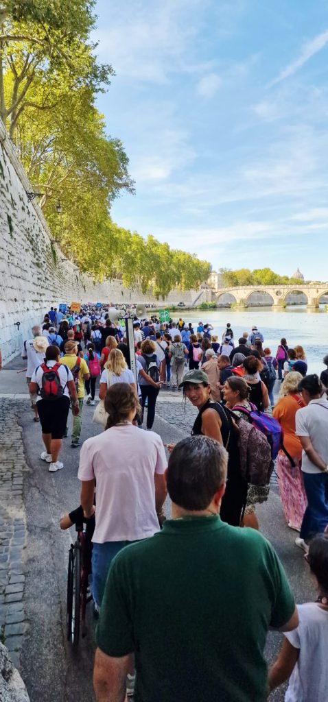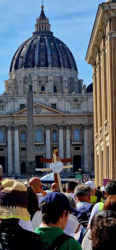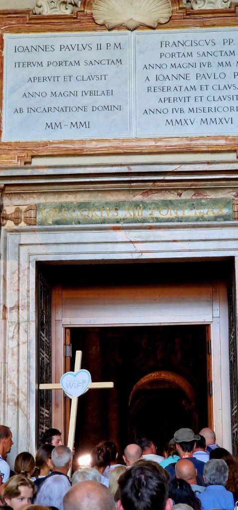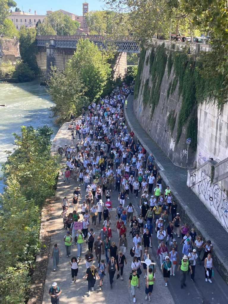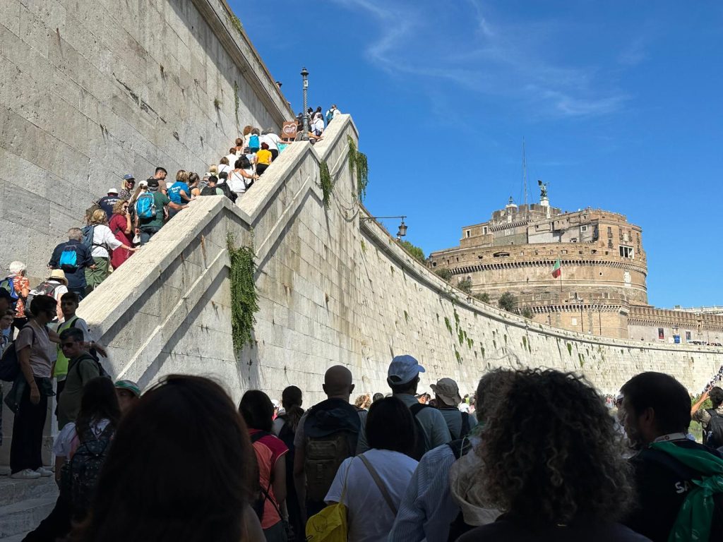 Il 20 Settembre 2025 si è svolto a Roma il settimo Capitolo del Monastero WIFI. Secondo le parole di don Massimo Vacchetti “il Monastero WIFI è una straordinaria esperienza di fede, una delle intuizioni dello Spirito Santo. Davvero Dio dà vita a tutte le cose e al desiderio di pregare e poter trovare una compagnia nella Chiesa, di ravvivare il dono che è in noi, di conservare la professione di fede, di poter combattere la buona battaglia”. Quello di quest’anno è il primo Capitolo Giubilare del Monastero WiFi e ha visto tre tappe. La prima nella Basilica di San Paolo fuori le Mura con la recita delle Lodi mattutine e le due catechesi sul Giubileo di don Riccardo Cendamo e dell’abate P. Mauro Giuseppe Lepori. La seconda: il pellegrinaggio a piedi alla Basilica di San Pietro lungo il bel sentiero pedonale che costeggia il Tevere, circa 8 km in buona parte al sole. La terza tappa con il raduno a Castel Sant’Angelo, il passaggio della Porta Santa e la Messa in San Pietro celebrata da mons. Aurelio Gazzera vescovo coadiutore di Bangassou (Repubblica Centrafrica).