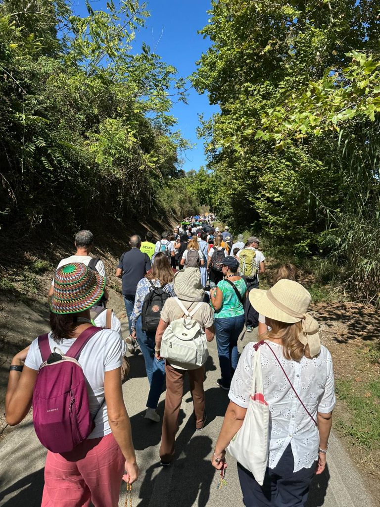 Dopo le Lodi in San Paolo fuori le Mura, Monica Marini ha spiegato il significato degli omaggi che ogni partecipante ha trovato sulla propria sedia tra cui il Rosario a bracciale con il logo e i colori del Monastero WiFi offerto da don Francesco Catalano di Foggia. Don Catalano è promotore del Progetto “Come Maria” che aiuta madri in difficoltà economica a scegliere la vita con l’offerta di un modesto lavoro, la realizzazione appunto di questi rosari, grazie al quale ad oggi sono già tredici i bambini nati dalla rinuncia all’aborto. Quindi Costanza Miriano, ideatrice e fondatrice del Monastero WIFI, dopo un caloroso saluto e l’augurio di “buon cammino” agli oltre duemila partecipanti, ha esortato tutti ad offrire il modesto disagio del percorso sotto il sole per poter poi varcare con maggior consapevolezza la Porta Santa, ricordando comunque che “siamo qui per mendicare una grazia che non ci spetta di diritto”.