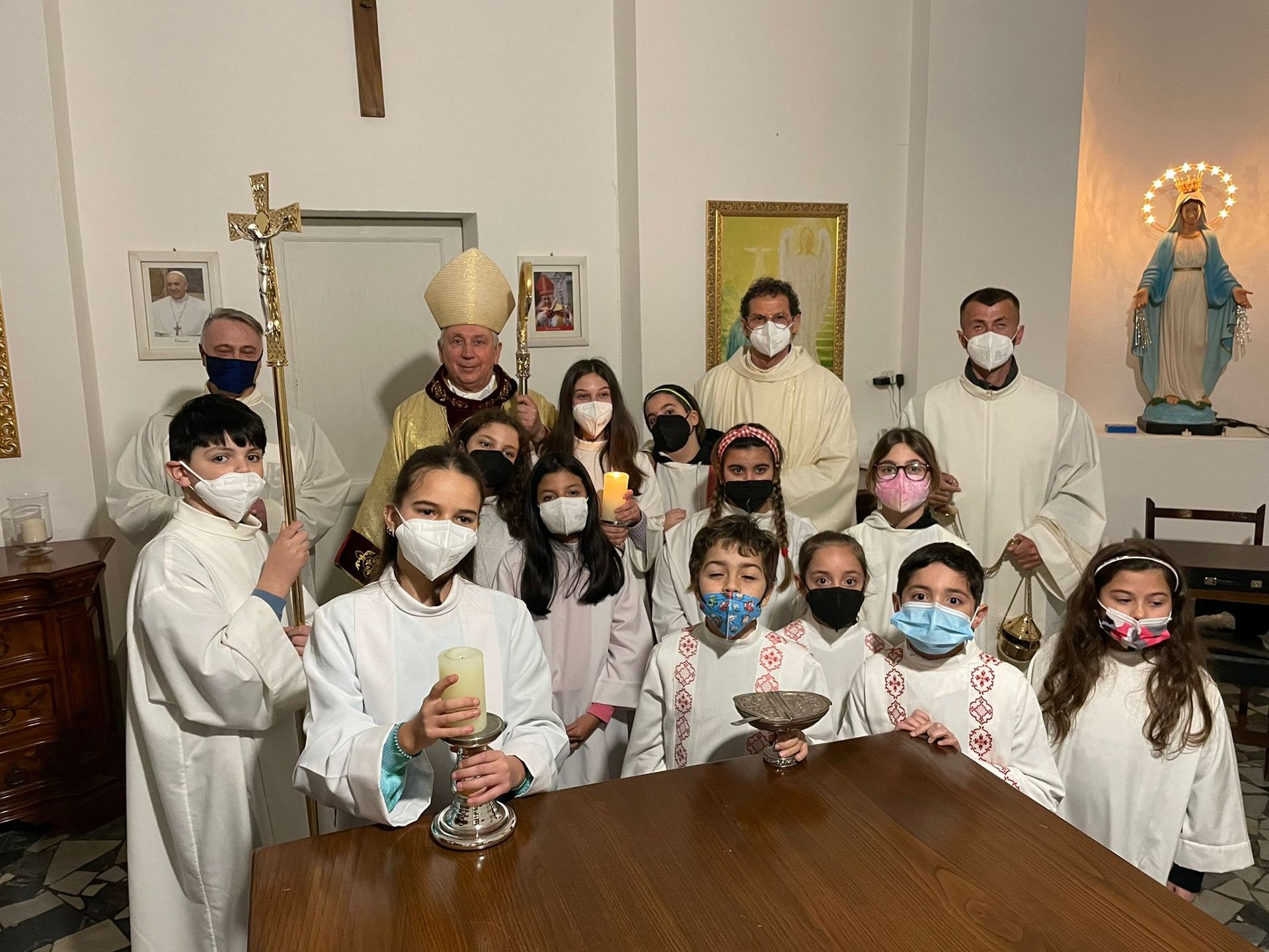 La Parrocchia di San Giuseppe della Piazza Due Giugno ha celebrato la Festa del suo Patrono in questo ultimo sabato 19 Marzo. Insieme al Vescovo Mons. Giusti la Parrocchia ha presentato i ragazzi che riceveranno il Sacramento della Cresima, i quali hanno fatto un atto d’impegno per continuare dopo la Cresima una vera testimonianza della vita cristiana. La Parrocchia insieme a Don Marzio ringrazia a tutti i suoi parrocchiani che hanno riempito la Chiesa di gioia.