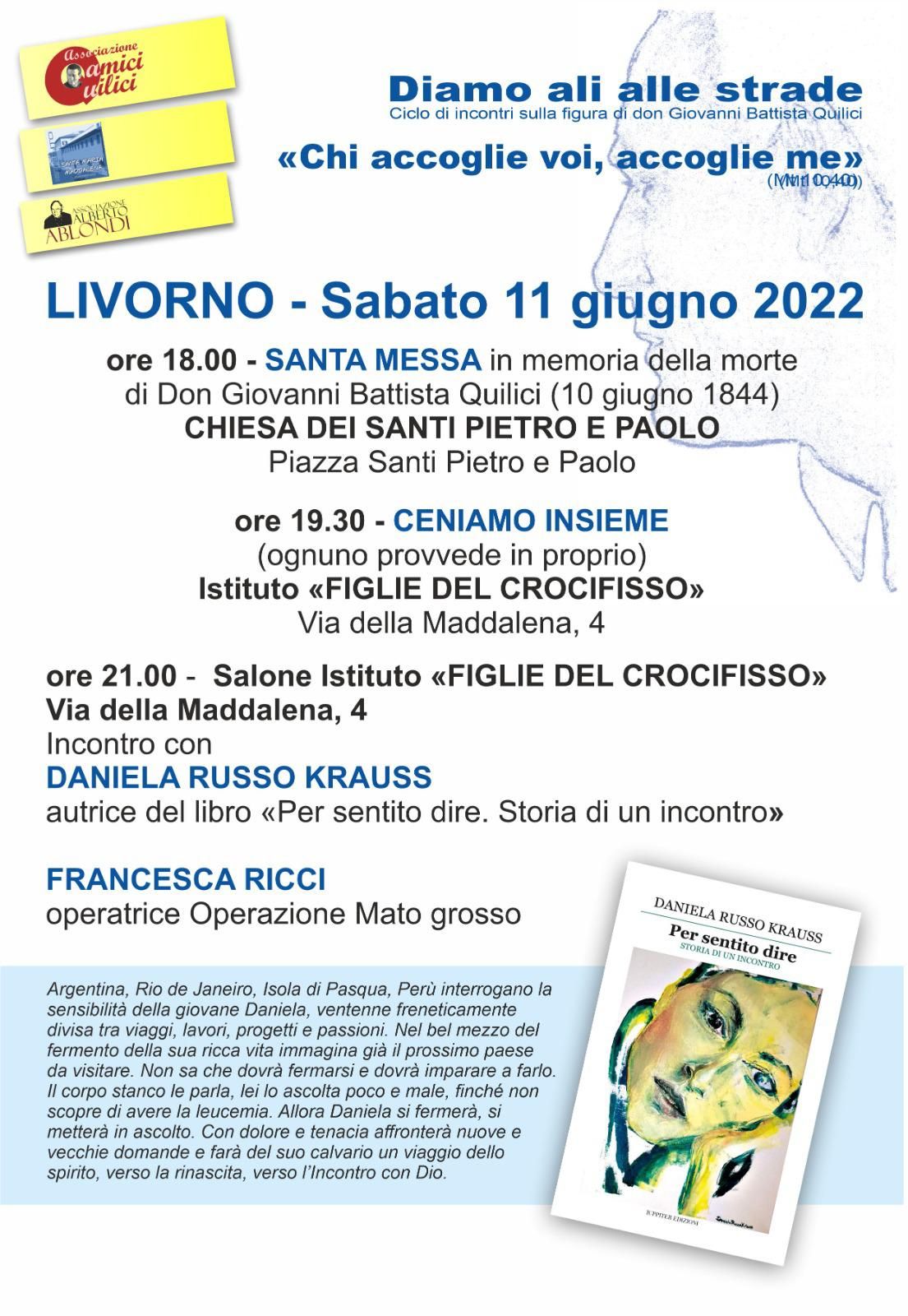 Era il 10 Giugno 1844, moriva don Giovanni Battista Quilici, sacerdote livornese dalla grande spiritualità e dall’immenso amore per i più poveri. L’Associazione Amici di don Quilici celebrerà l’anniversario della sua morte Sabato 11 Giugno con la Messa alle 18 nella chiesa dei SS. Pietro e Paolo, dove lui fu primo parroco e dove si trovano i suoi resti e con una cena incontro all’istituto La Maddalena, dove risiedono le Figlie del Crocifisso, la congregazione femminile da lui fondata.