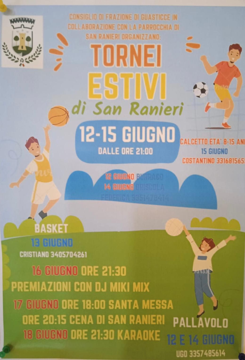 Inoltre la Parrocchia insieme al Consiglio di Frazione stanno ultimando i preparativi per la festa patronale di San Ranieri, con tornei di basket, pallavolo, calcetto, burraco e briscola.Il tutto culminerà Sabato 17 Giugno con la S Messa alle 18 e la cena di San Ranieri.