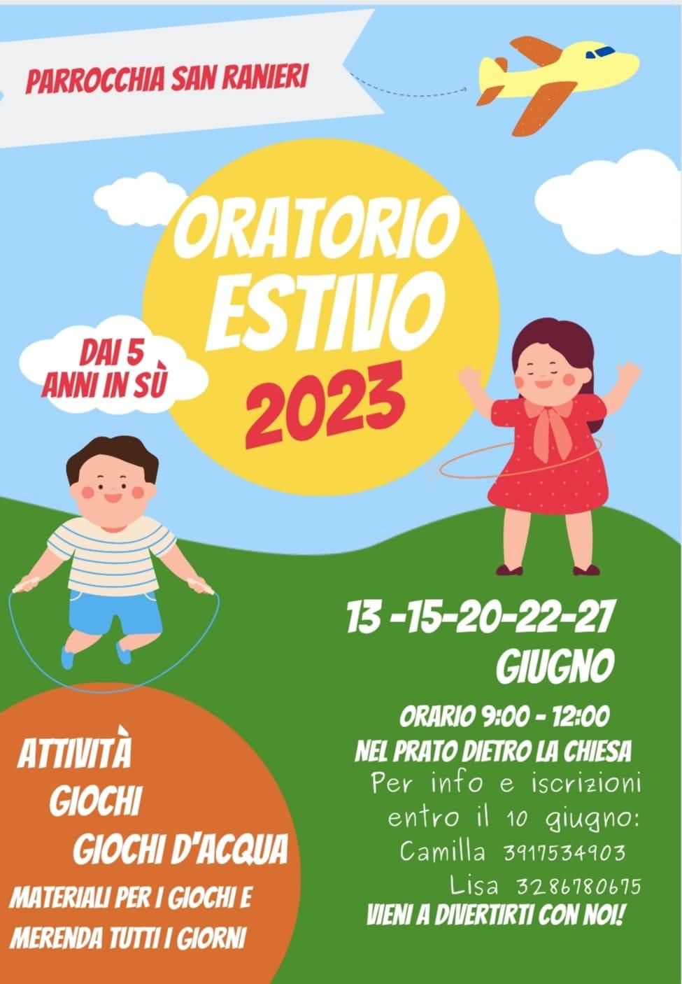 Venerdì 2 Giugno alla presenza del Vescovo Simone, dopo la Messa, è stato benedetto e inaugurato l’Oratorio San Ranieri, nell’area al lato e dietro la chiesa parrocchiale con il campo da basket e un prato per giochi all’aperto. L’oratorio sarà aperto a tutti i ragazzi della zona, dai più piccoli, di 5 anni, fino ai grandi e sarà attivo, in questo mese di Giugno dalle 9 alle 12, con animatori del gruppo cresimati.