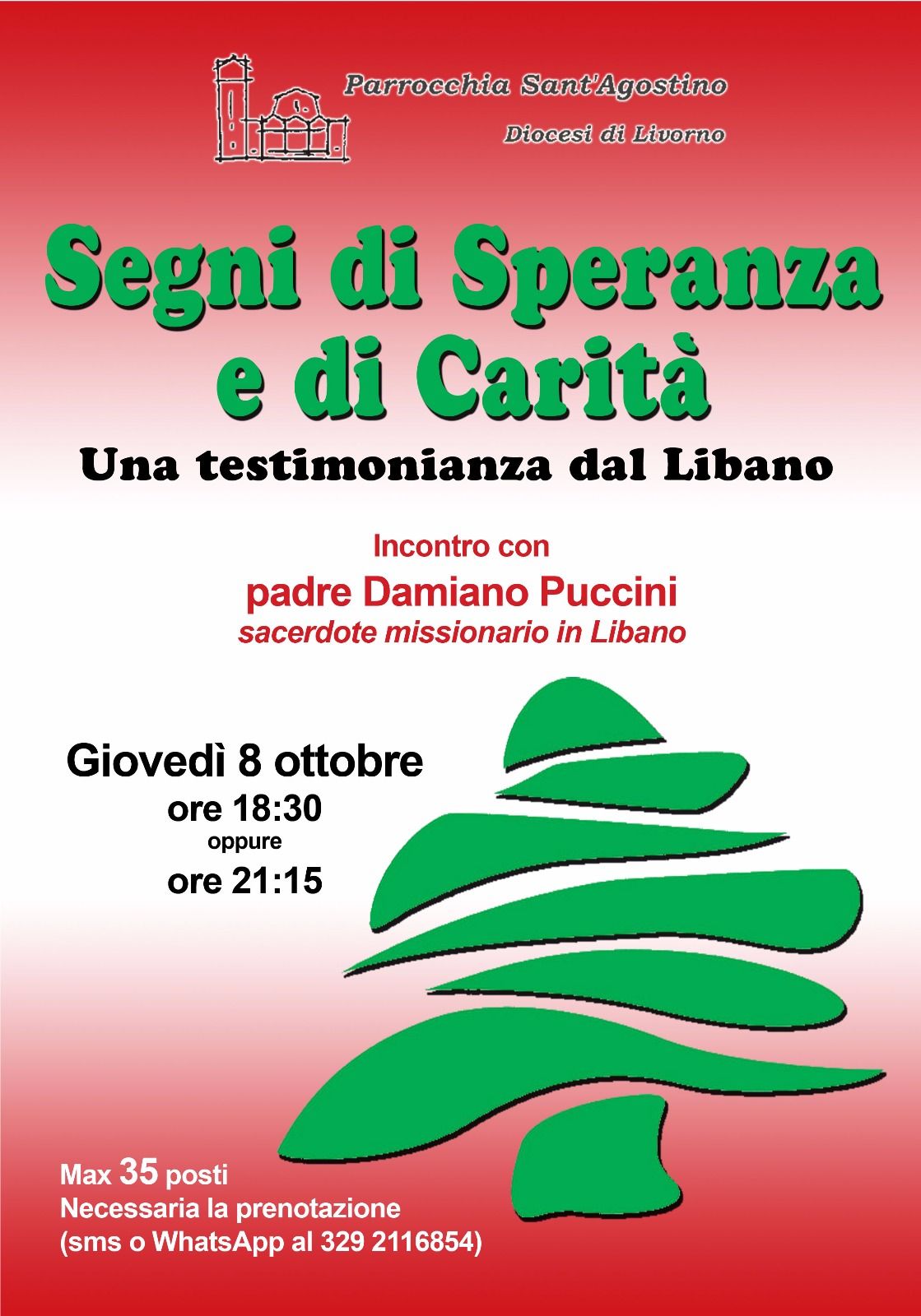 La parrocchia di Sant’Agostino ospiterà l’incontro “Segni di speranza e di carità”, con la presenza di padre Damiano Puccini che spesso abbiamo intervistato su queste pagine, raccogliendo gli appelli di solidarietà per il popolo libanese. Padre Damiano porterà la sua testimonianza di missionario in una terra martoriata e ultimamente devastata anche dalla tremenda esplosione dei primi di Agosto, avvenuta nel porto di Beirut. L’incontro si svolgerà sia alle 18.30 che alle 21.15.