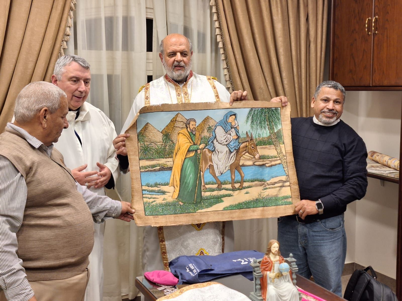 In questo secondo giorno del pellegrinaggio nella Terra Santa di Egitto l’incontro con il vescovo Tommaso della chiesa copta cattolica presente a Giza, egli si definisce il “Vescovo delle piramidi”. La Chiesa di Giza è una chiesa estesa su un territorio molto ampio dell’Egitto con 12 parrocchie e circa 10.000 fedeli. Dal nuovo governo hanno avuto il permesso di realizzare finalmente le loro chiese e quindi è un momento in cui la comunità cristiana si sente più protetta dalle autorità governative, anche perché finalmente si parla solo di cittadini egiziani e l’appartenenza religiosa è considerata un fatto personale.In questa giornata molte sono state le visite ai luoghi santi dove la sacra famiglia ha soggiornato. Oggi quei luoghi come in Israele sono segnati da chiese molte delle quali di epoca Costantiniana come quelle in Gerusalemme e Betlemme. Interessante sapere che i cristiani cattolici di Egitto vanno alla Messa la domenica con una percentuale che sfiora il 98% dei battezzati.