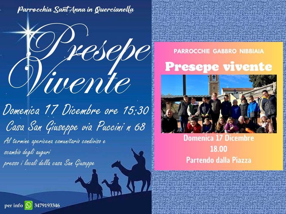 Questa settimana sono in programma in molte parrocchie le rappresentazioni dei presepi viventi. Domenica 17 alle 15.30 in via Puccini a Quercianella, presepe vivente e a seguire festa di natale della parrocchia S. Anna. E sempre domenica, ma alle 18, andrà in scena anche il presepe realizzato dai piccoli della parrocchia S. Michele al Gabbro come ci raccontano in questo video