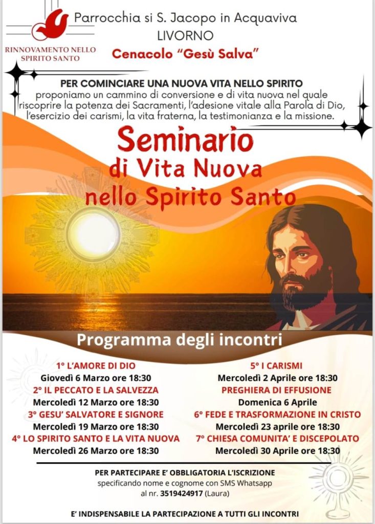 Continua anche il cammino del Rinnovamento nello Spirito in diocesi: è cominciato infatti giovedì scorso il “Seminario di vita nuova” nella chiesa di San Jacopo, dove oltre 30 persone hanno accolto l’invito a partecipare; il seminario serve a riscoprire il dono del proprio Battesimo. Inoltre continua anche il servizio al carcere “Le Sughere”; ogni sabato una piccola équipe entra nel penitenziario per incontrare i fratelli detenuti nell’alta sicurezza: un incontro davvero significativo per parlare dell’Amore di Dio ad ogni uomo, anche a coloro che hanno sbagliato e della sua misericordia.