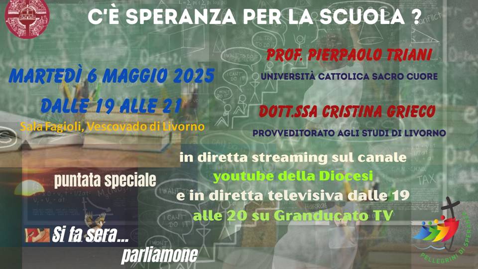La puntata, intitolata “C’è speranza per la scuola?”, si inserisce nella serie di appuntamenti che la Diocesi ha organizzato quest’anno per riflettere su tante realtà quotidiane, nell’ottica della speranza, tema del Giubileo. La serata vedrà la partecipazione del prof. Pierpaolo Triani, docente all’università cattolica e della Provveditora agli studi dott.ssa Cristina Grieco. Con questi due ospiti e grazie ai contributi di altri insegnanti ed educatori, si proverà a fare il punto sulla situazione del mondo della scuola oggi, ma soprattutto si cercheranno nuove strade per migliorare la formazione delle nuove generazioni.