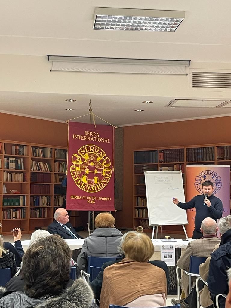 Presso il salone parrocchiale di Santa Lucia, il Serra Club di Livorno ha invitato Don Yurii Machalaba, parroco della Chiesa greco cattolica ucraina di Livorno che ha sede in via Guerrazzi Don Yuri, per presentare la storia e le tradizioni della Chiesa Greco cattolica ucraina. Questa Chiesa è presente nella nostra diocesi da quattordici anni. All’inizio vi era una presenza di 1100persone, dopo l’inizio della guerra sono saliti a 2500 e nella nuova sede offerta dall’ex Istituto delle suore Venerini, hanno ricavato una cappella dedicata a san Vladimiro dove la domenica vengono celebrate due Messe una delle quali si tiene alle ore 15 per dare la possibilità alle badanti di partecipare durante la pausa del loro servizio.