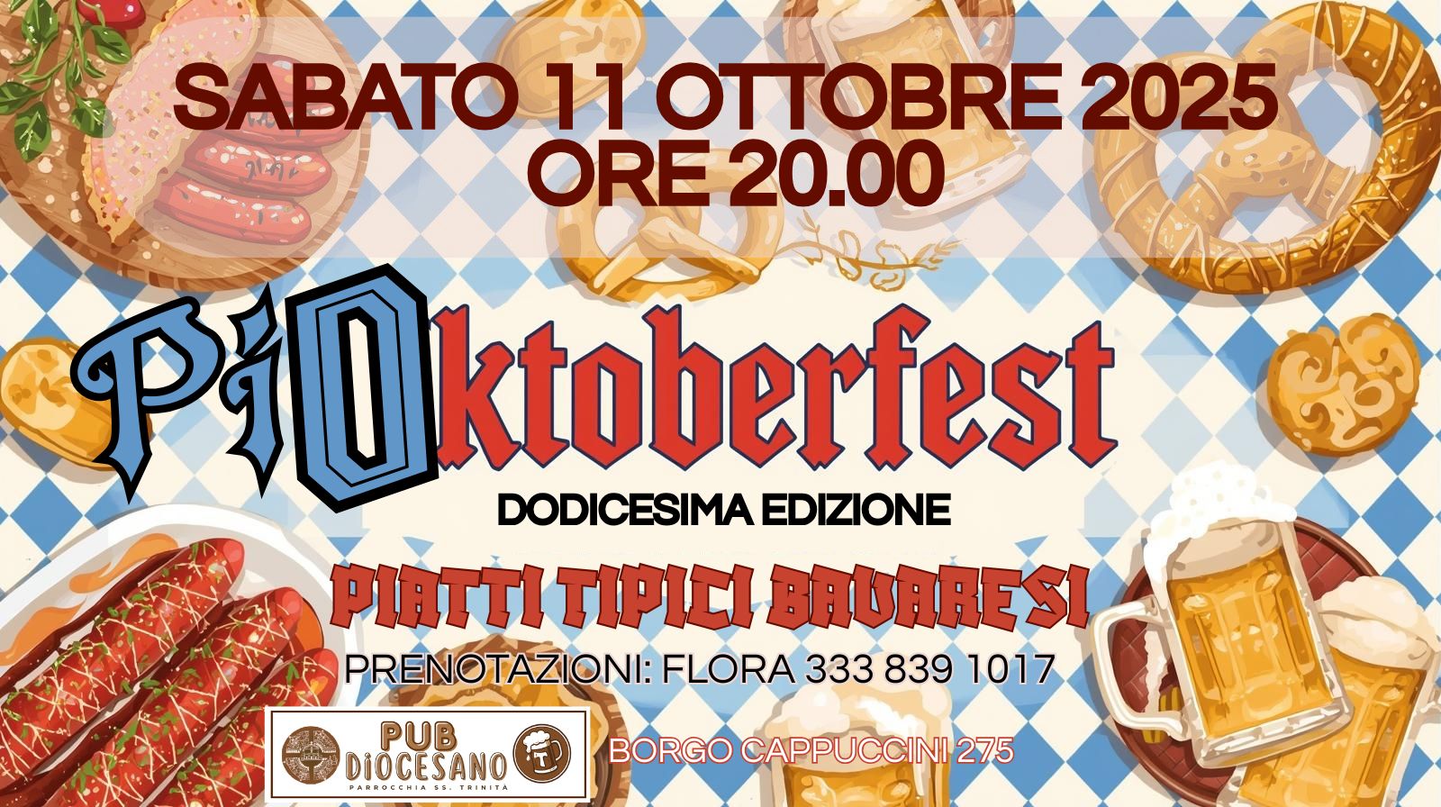 Dodicesima Edizione della Festa Bavarese al Pub Diocesano: sabato 11 ottobre, a partire dalle ore 20.00, il Pub Diocesano (Circolo Pio X) di Borgo Cappuccini 275 si trasformerà in un angolo di Baviera.