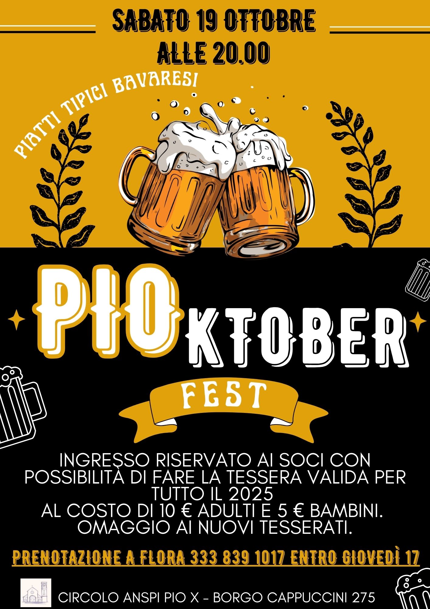 Per le prenotazioni è necessario chiamare la sig.ra Flora al 333 8391017 entro giovedì 17 ottobre