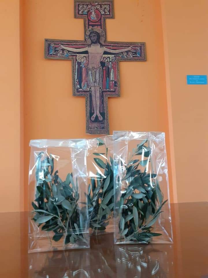 Dato che anche questo anno non è stato possibile fare le visite pastorali alle famiglie, don Federico con i membri del Consiglio Pastorale Parrocchiale hanno deciso di consegnare una bottiglietta di acqua benedetta e la preghiera per le benedizione delle famiglie nel giorno di Pasqua, alle famiglie direttamente in chiesa. Il territorio parrocchiale è molto ampio, quindi, è stato suddiviso in varie zone e sono stati consegnati a mano agli abitanti degli inviti di partecipazione alle celebrazioni della messa, specificando l’intenzione di offrire una bottiglietta di acqua benedetta a fine messa. E’ stata una novità molto apprezzata e ad oggi sono state già distribuite più di 173 bottigliette. Anche per prepararsi alla domenica delle Palme la comunità si è riunita per confezionare i rametti di ulivo e sigillarli nei sacchetti di cellophane, tutto seguendo le norme anti-covid, tutto in sicurezza a distanza e con le mascherine.
