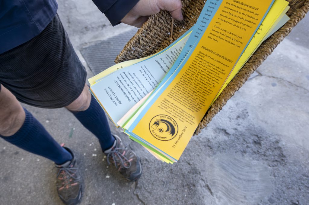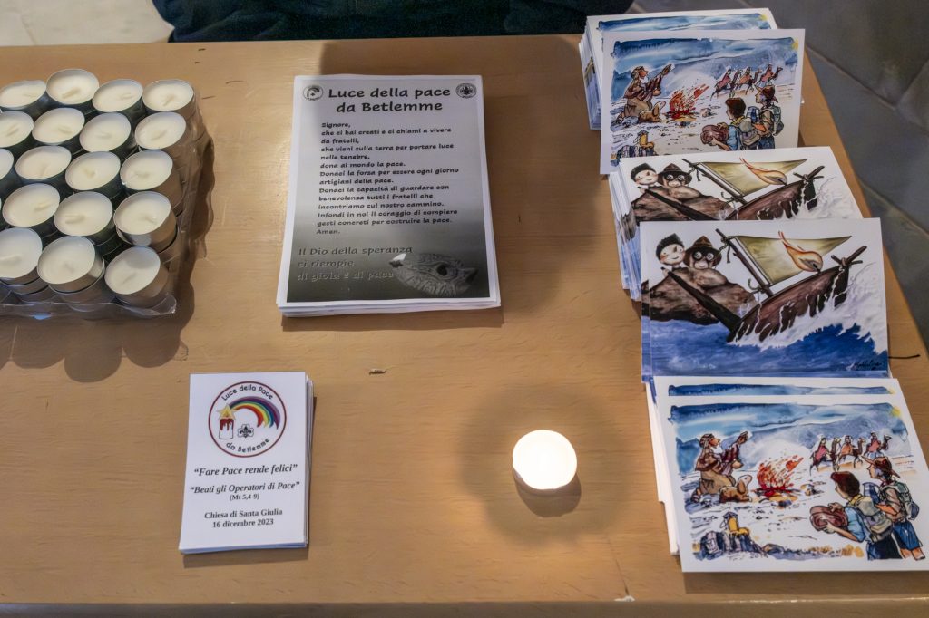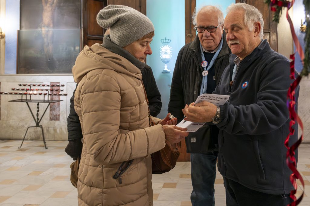 I ragazzi scout dell’Agesci, insieme ad alcuni rappresentanti delle parrocchie diocesane si trovano a dicembre quest’anno nel primo giorno d’inverno sulla banchina ferroviaria, binario quarto, della Stazione dei treni. Aspettano il treno che proveniente da Pisa con la lampada della pace. I ragazzi, appena il treno si ferma, corrono verso la seconda carrozza. Le porte si aprono e una lampada illumina i volti di chi li attende. I ragazzi hanno in mano le lanterne protese verso la luce. I ceri si accedono e uno dopo l’altro illuminano la stazione. Nella Chiesa della Natività a Betlemme vi è una lampada ad olio che arde perennemente da moltissimi secoli, alimentata a turno da tutte le Nazioni cristiane della Terra. Dal 1986, ogni anno prima di Natale, uno scout austriaco si reca a Betlemme, accende una luce dalla lampada della Grotta della natività e la porta Linz. Da qui la luce viene diffusa in tanti paesi europei. Ad ogni fermata del treno, troviamo gli scout e chi si è presentato a questo appuntamento, si accendono le loro lampade e si riparte per portare la Luce di Betlemme nelle parrocchie, nelle case, nei luoghi di sofferenza e di cura, per donarla a chiunque la voglia prendere. E chiunque riceverà la luce cercherà di mantenere la fiamma accesa per tutto il periodo di Natale. La luce è un’interconnessione globale tra persone che si dirama velocemente, che ha come suo significato la pace, il portare la pace tra i popoli. La luce proviene da Betlemme in luogo in cui Dio si è incarnato. La pace è reale: è Cristo. La pace che ci dona Gesù è fatta per essere donata a chi incontriamo. Noi abbiamo la responsabilità, alla luce dei conflitti bellici in corso in Ucraina, in Palestina, in Myanmar e in altre regioni della Terra, oggi più che mai di dire alto e forte che la pace è possibile, è reale. Papa Francesco ci invita ad accompagnalo nella profezia della pace- Cristo, Signore della pace! La pace si fonda su due parole, perdono e gratuità.