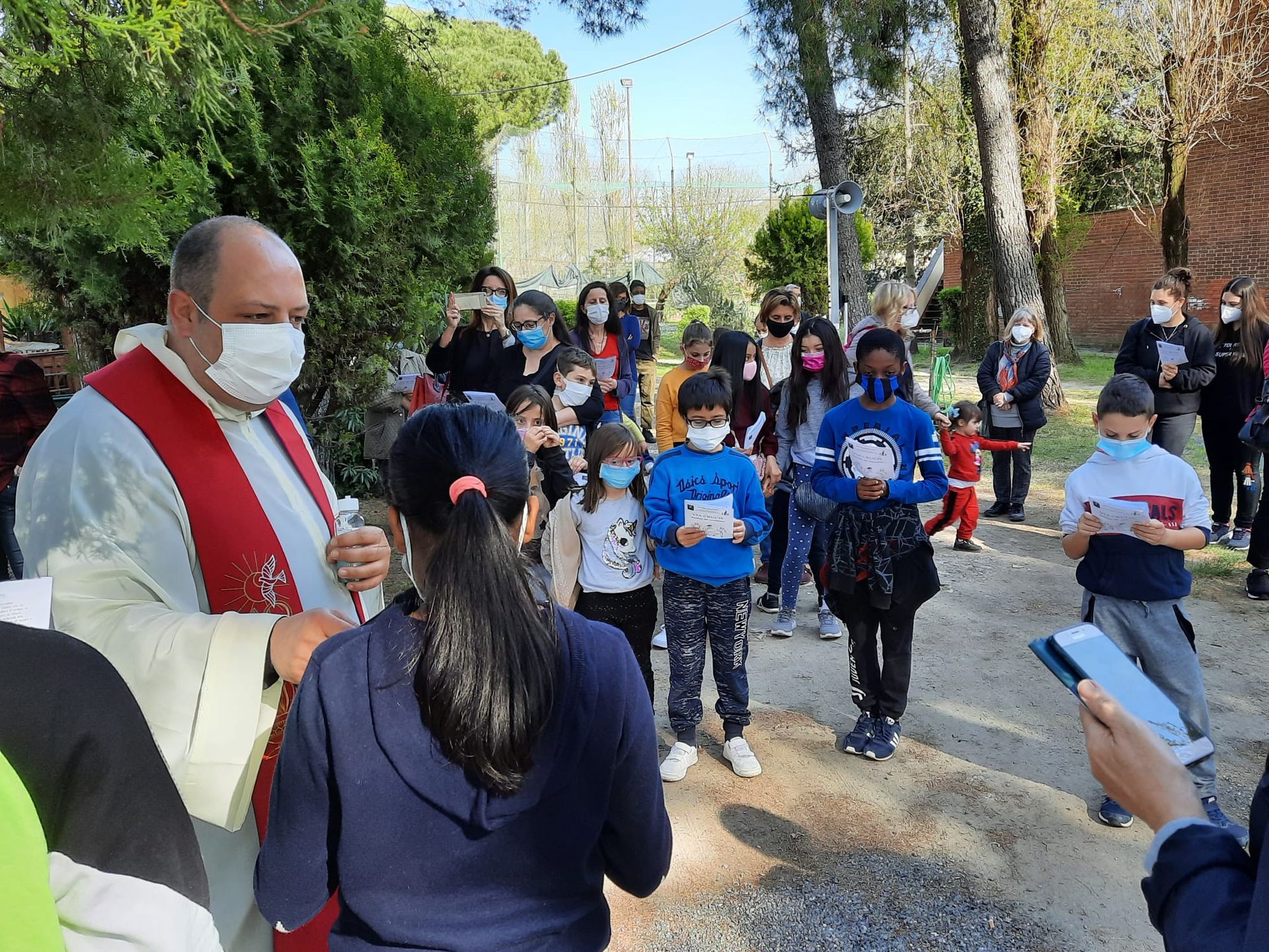 In questo venerdì Santo 2021, le parrocchie Sacra Famiglia e Nostra Signora di Fatima, dell’Unità pastorale Quartieri Nord, hanno condiviso un bellissimo momento di preghiera, la Via Crucis. Hanno partecipato tutti i bambini del catechismo, accompagnati dai loro genitori e anche da qualche nonno.